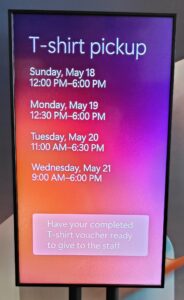 今回の投稿では、Day 0でのTシャツの受け取りまでです。Day 0でTシャツを受け取った後の会場内の探索で見つけた特別展示について次回の投稿にしたいと思います。