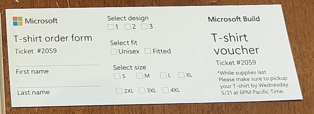 Microsoft Buildでは、毎回Tシャツの提供がありました。しかし、COVID-19以前までのMicrosoft BuildのT-shirt pick upでは、サイズを選ぶだけでした。